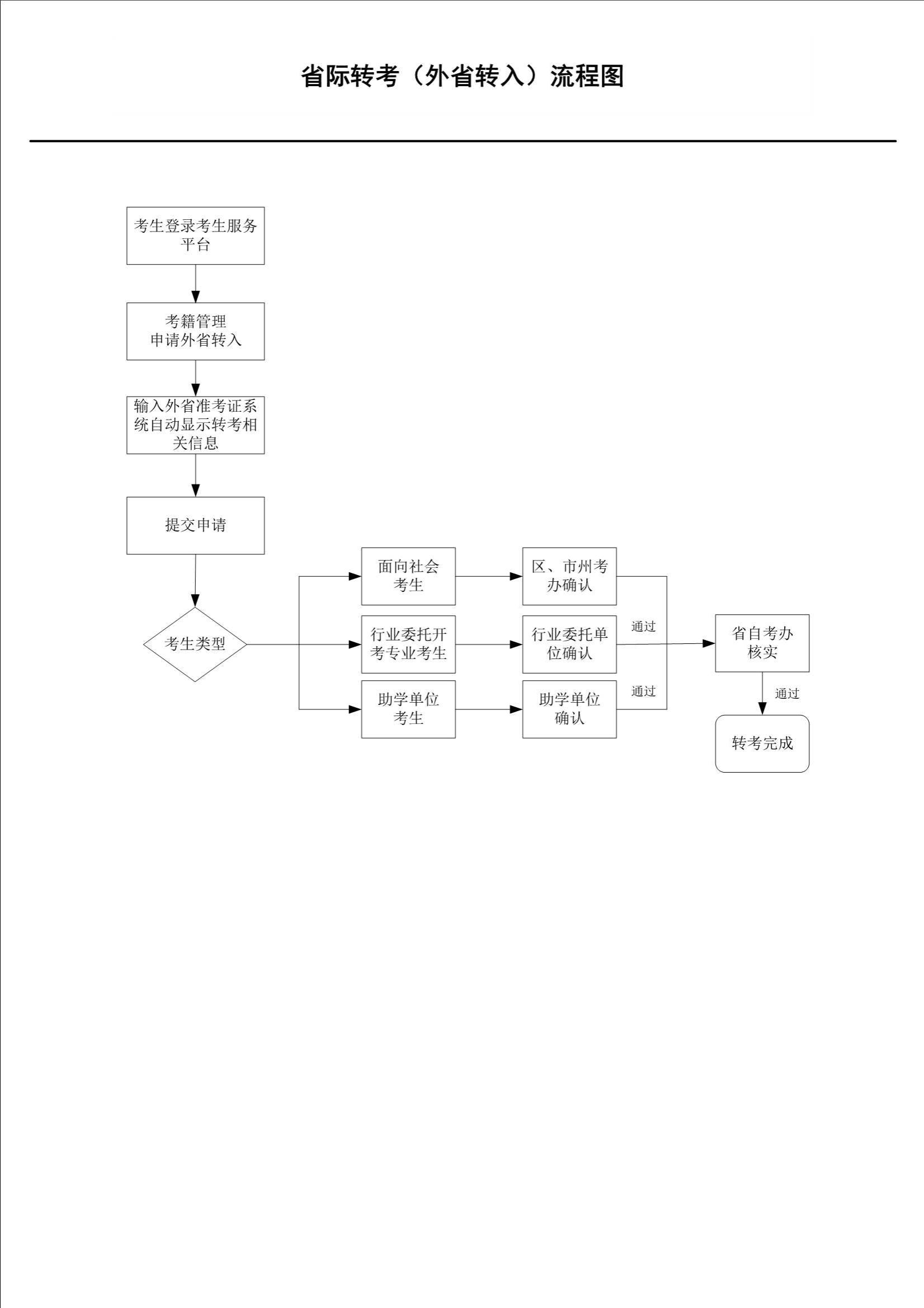 高等教育自学考试省际转考(外省转入)流程图