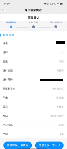 第四步:进入基本信息确认页,无误则进入下一步,有误请填写正确信息提交