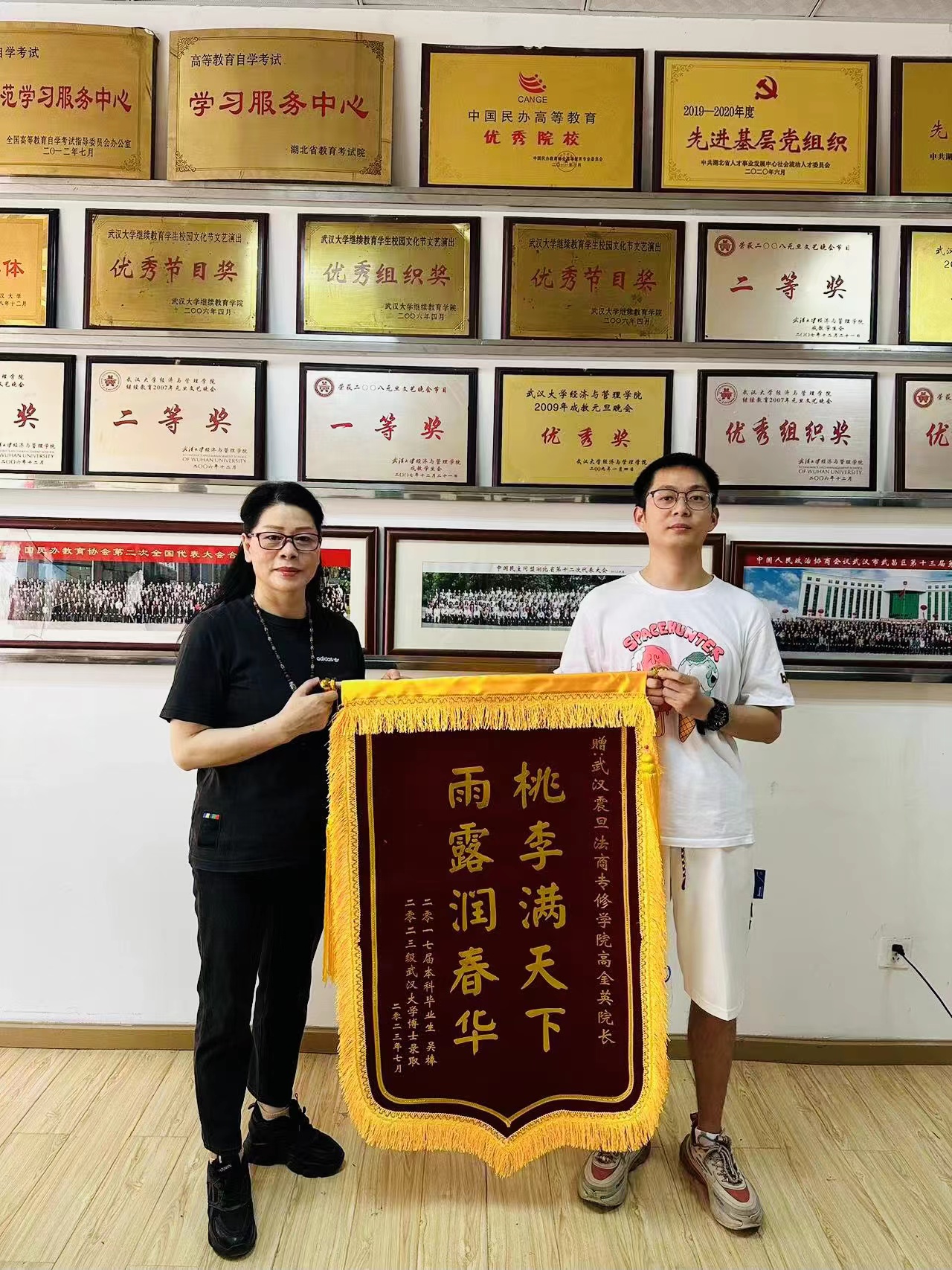 2023年7月7日,学院校友吴棒回到母校,向母校赠送锦旗,高金英院长亲切接待了吴棒校友,代表学校接受锦旗,并与吴棒校友长时间交流,还代表武汉震旦法商专修学院给吴棒校友发放优秀毕业生专项奖学金。