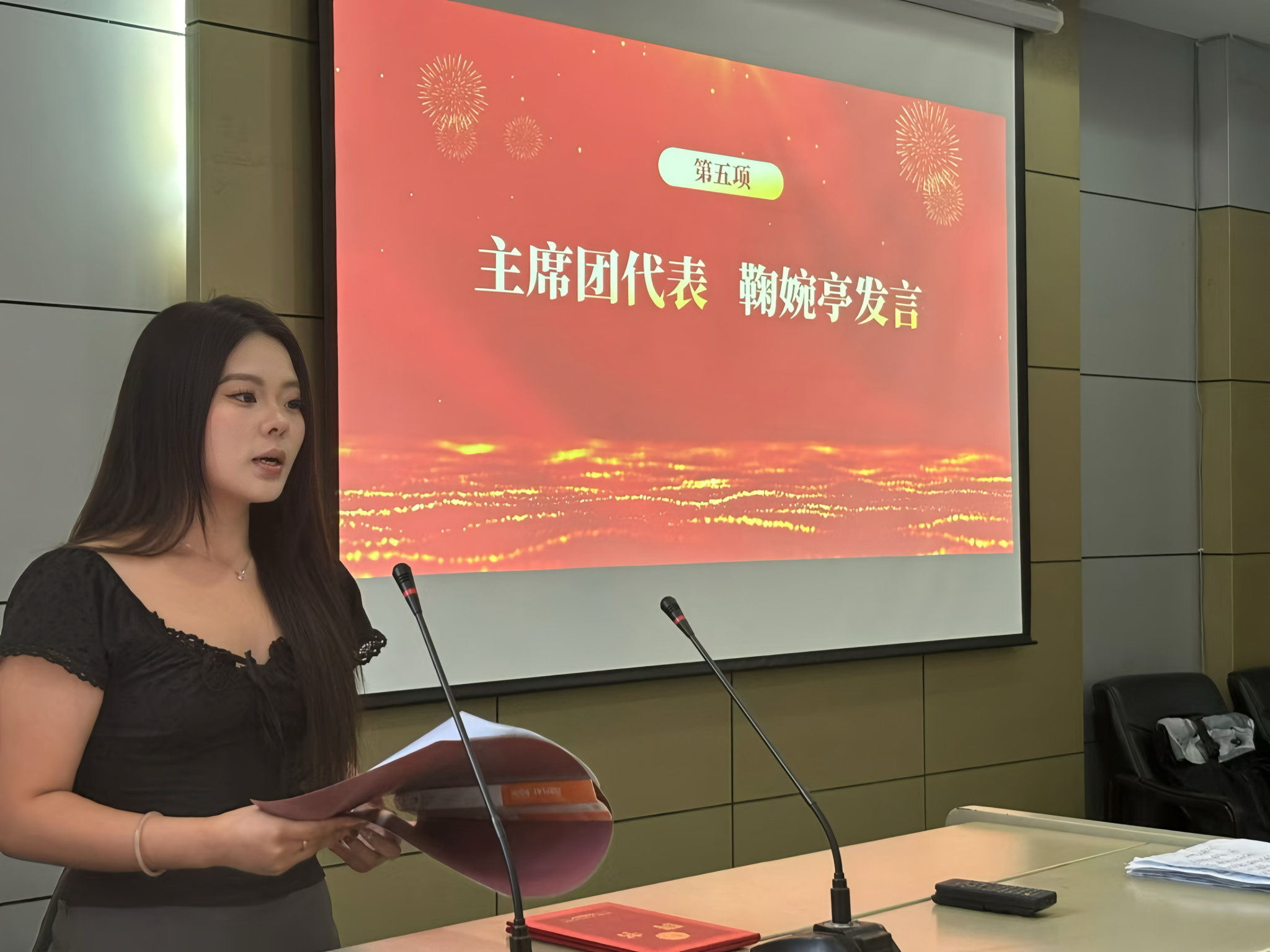 主席团主席鞠婉亭同学介绍了学生素质发展中心在学院学生组织中的职能和责任,回顾了学生素质发展中心过去一年在学生活动组织、学生素质能力提升方面取得的成绩,并明确了新一年的工作将聚焦在“提升服务能力、重视沟通合作、推动创新发展、加强培训提升”四个主要方向。